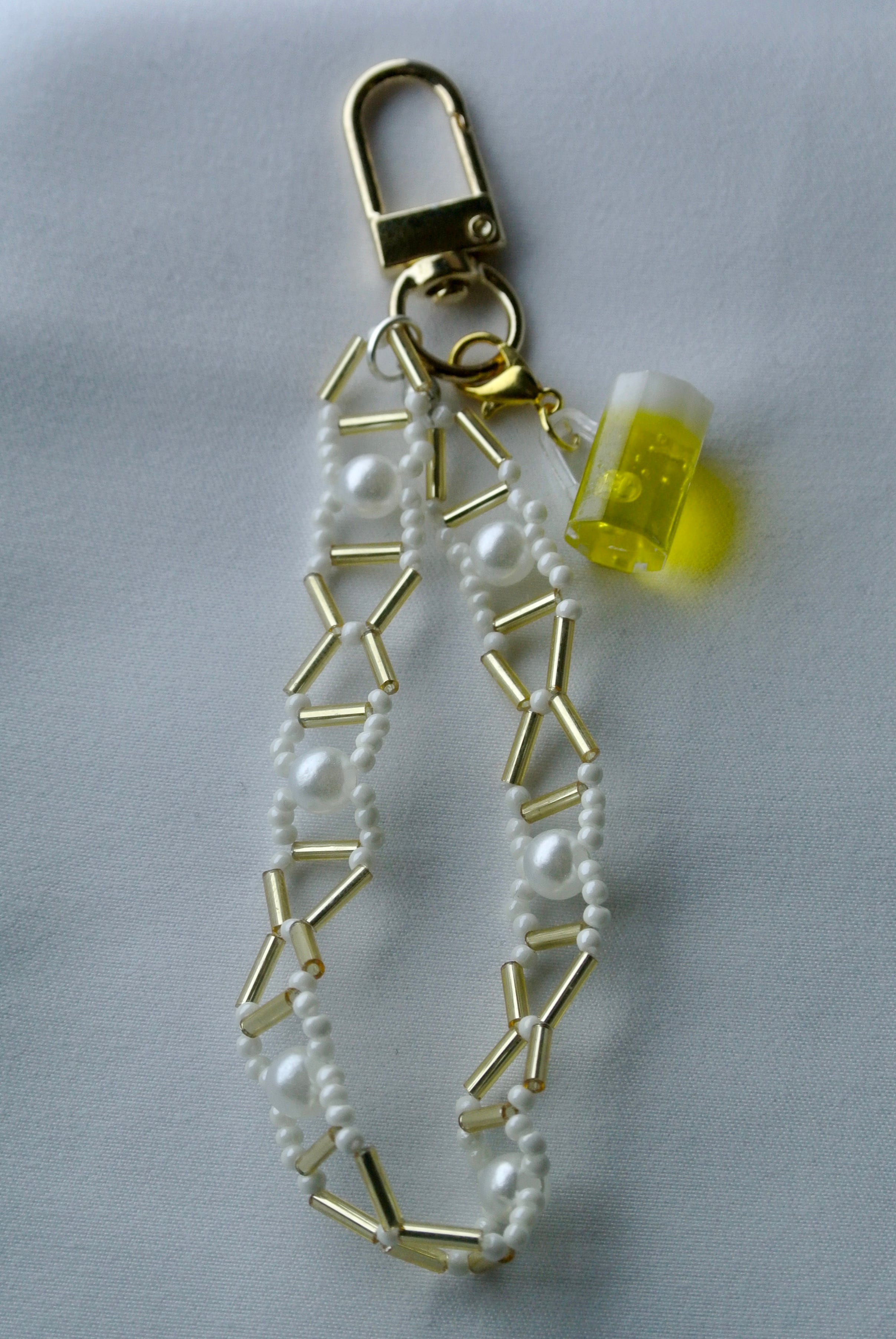 ビールな色合いのキーチャーム。ふわふわでオーロラのかかった泡と、黄金色でシュワシュワ弾けるビールを、その日の愛で仕上げた一点ものです。